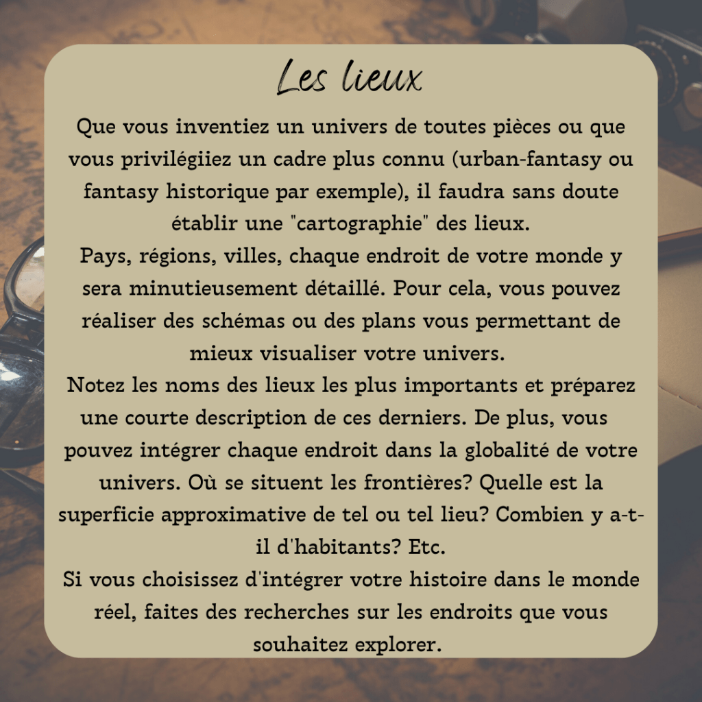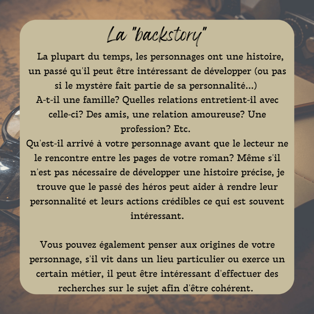Ces méthodes sont basées sur mon expérience personnelle et sur mes préférences en matière d'écriture et de travail préparatoire et elles ne sont donc pas une vérité générale ! Chacun.e procède à sa manière !